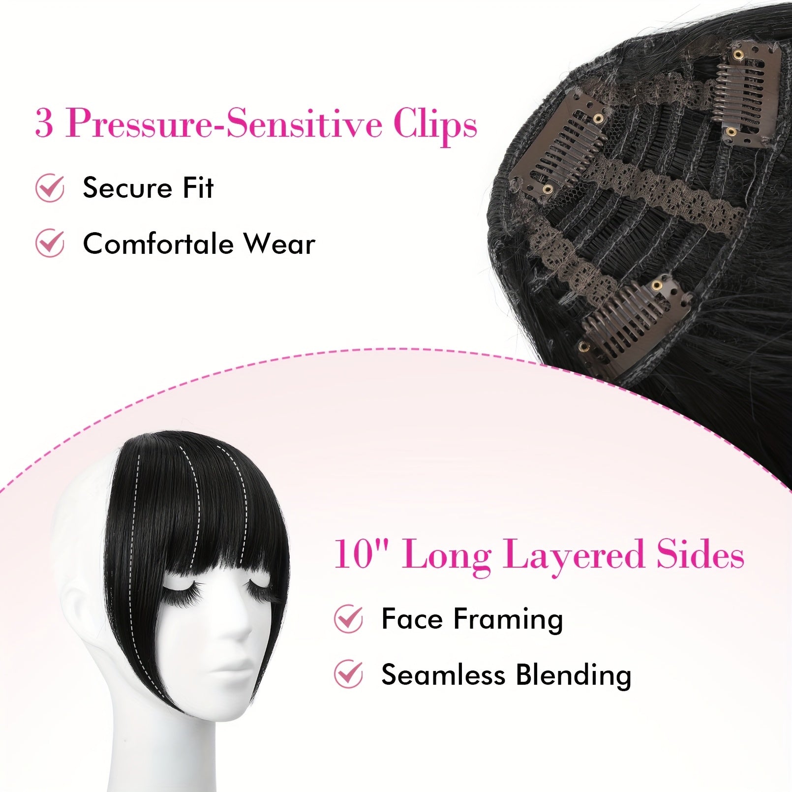 Women's Clip-In Bangs - Natural Look Fake Bangs Extensions with Temples, Easy to Use No Glue Needed, Straight Hairstyle, for Everyday & Special Events - Salon-Quality Fringe Hairpiece, Glossy Finish