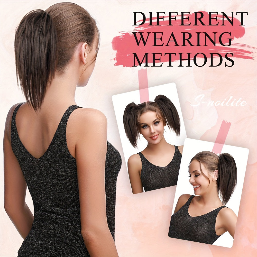 Ponytail Extension 12in/30cm Short Claw Clip On Pony Tails Hair Extensions For Women Girls Synthetic Highlight Soft Fully Natural Straight Bun Hair Piece Fake Ponytails Hairpiece Fluffy Chignon Daily Use